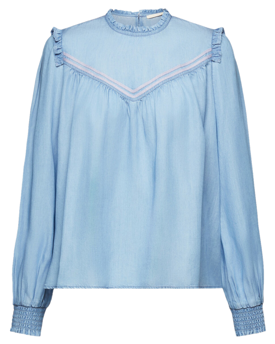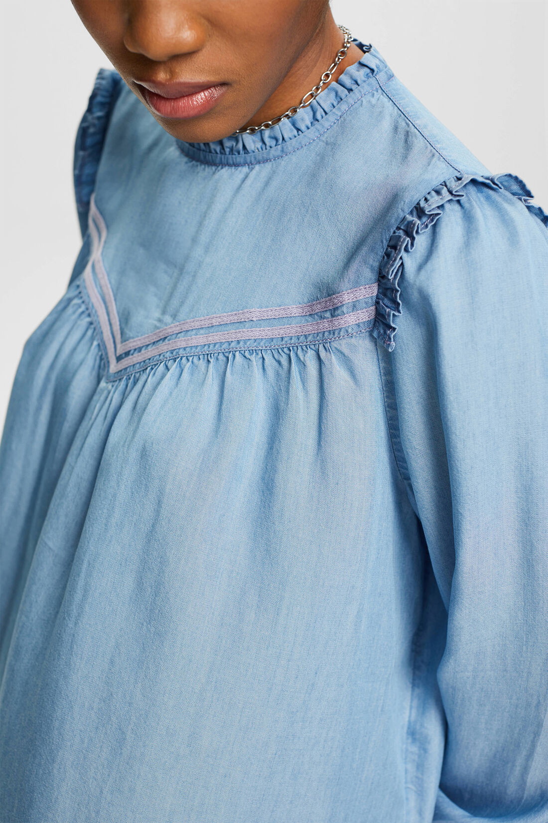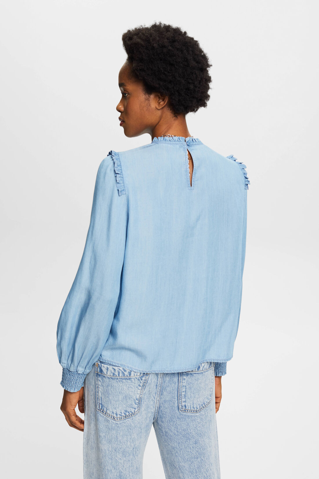 BLUSA DE VOLANTES EN IMITACIÓN VAQUERA MUJER ESPRIT