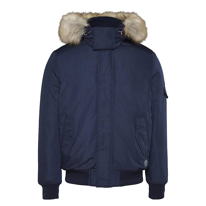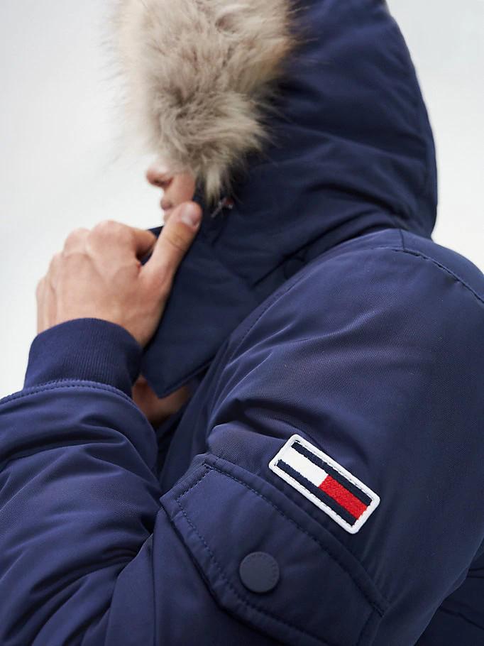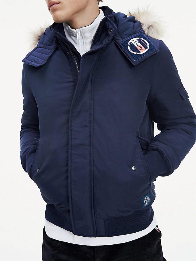 DESCRIPCIÓN: Cazadora para hombre de la marca Tommy Jeans en color azul, elaborada en tejido con acabado liso, con capucha, bolsillos, elástico en puños y bajo.