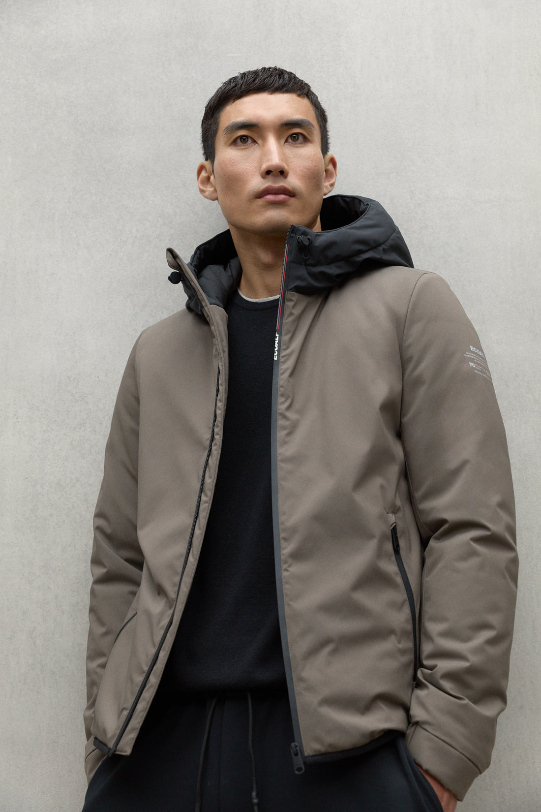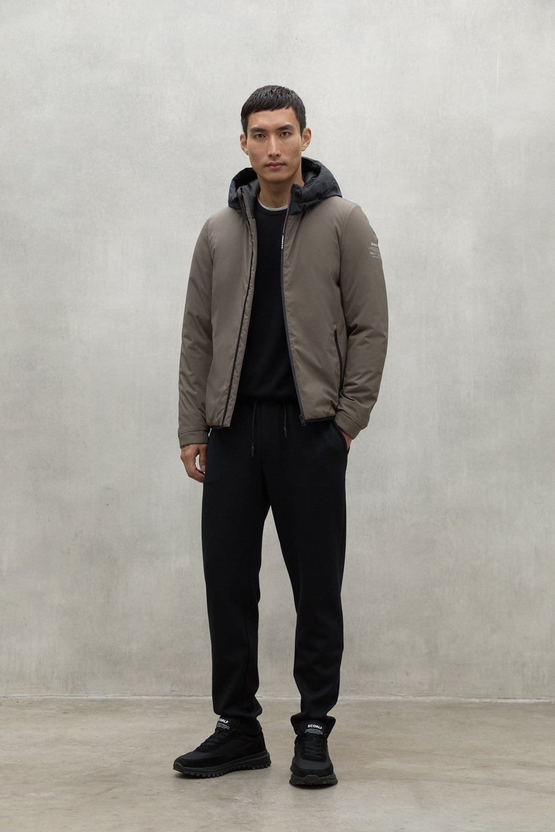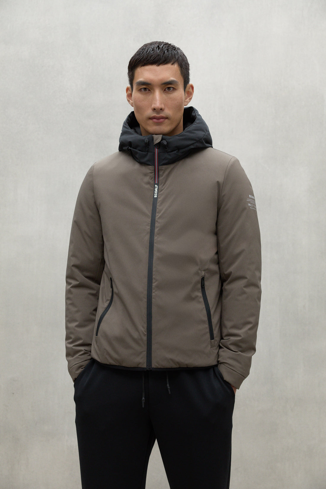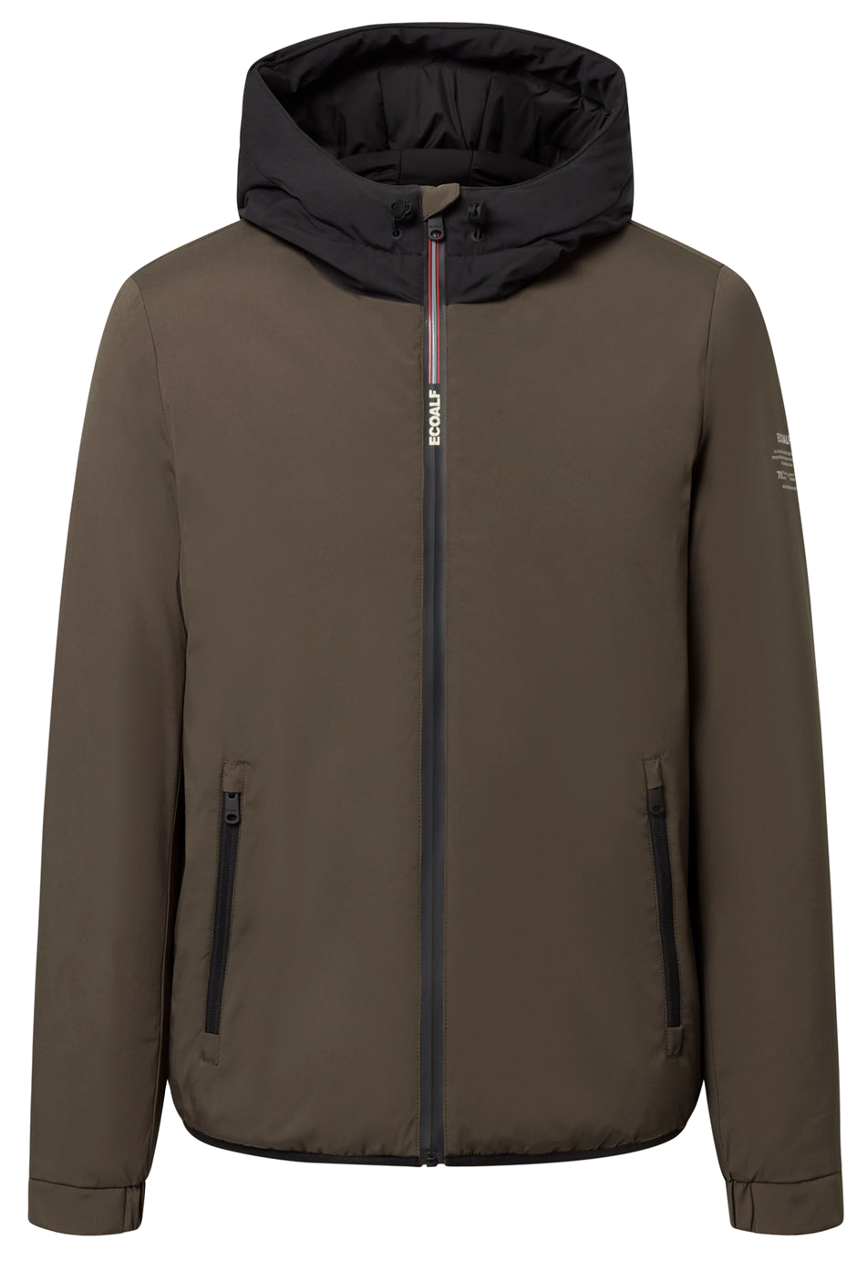 - Logo ECOALF: Presente en la cremallera y en la manga, asegura una apariencia moderna y de calidad.