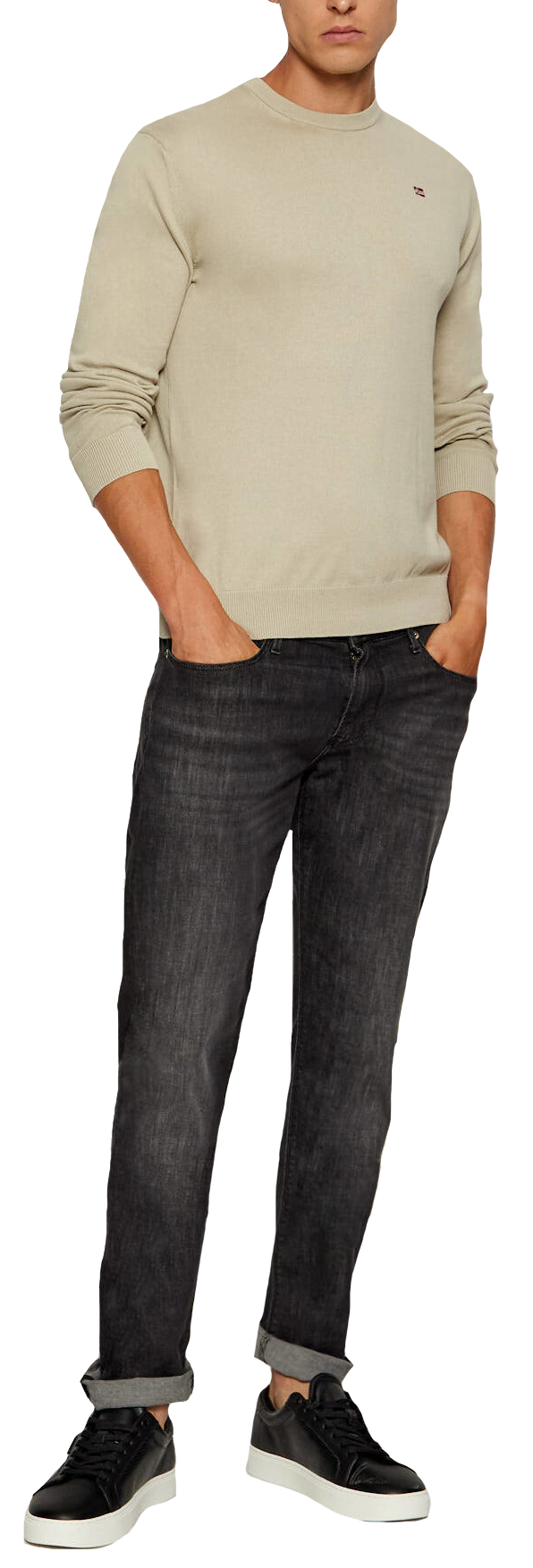 Con un fitting regular, el jersey Droz ofrece un ajuste cómodo, manteniendo al mismo tiempo una silueta definida. Ideal para hombres de todas las complexiones, el corte regular asegura que esta prenda se convierta en un elemento básico para cualquier estación. El modelo de la imagen lleva una talla L y mide 187 cm, proporcionando una referencia visual clara para seleccionar el tamaño adecuado.