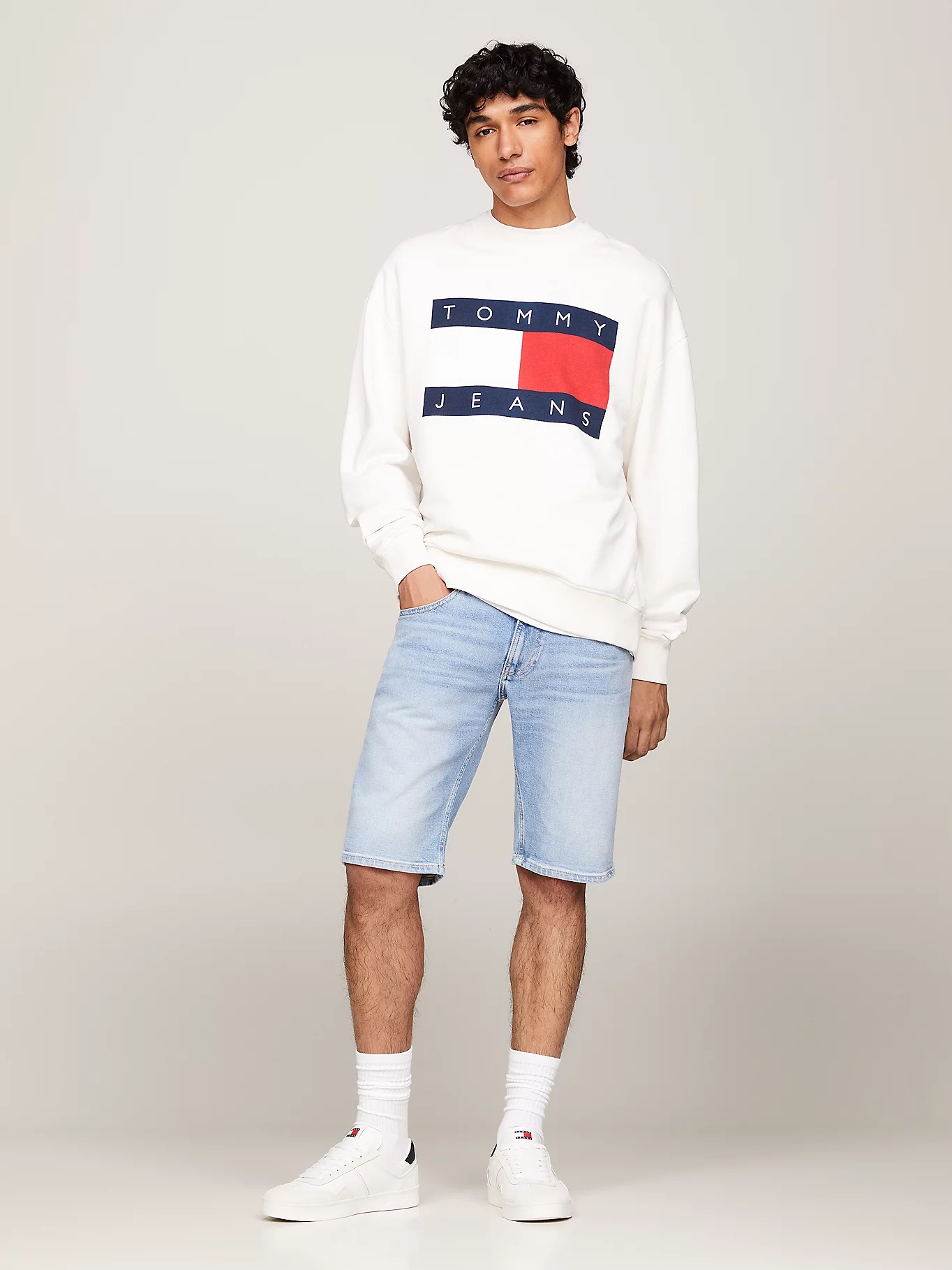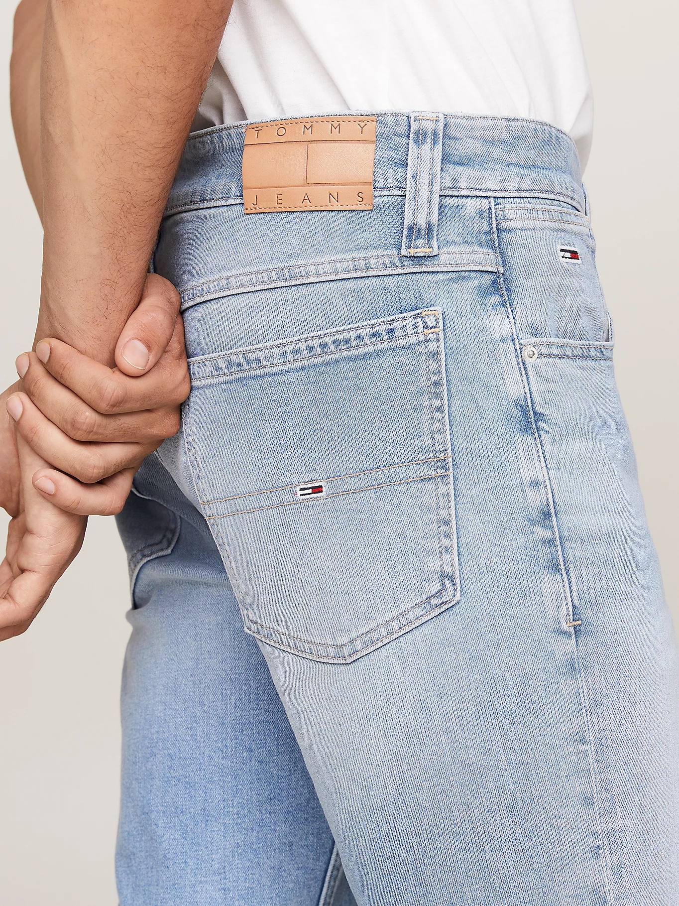 - Parche con el logo de Tommy Jeans en el pequeño bolsillo delantero y trasero, marcando la calidad y estilo de la prenda.