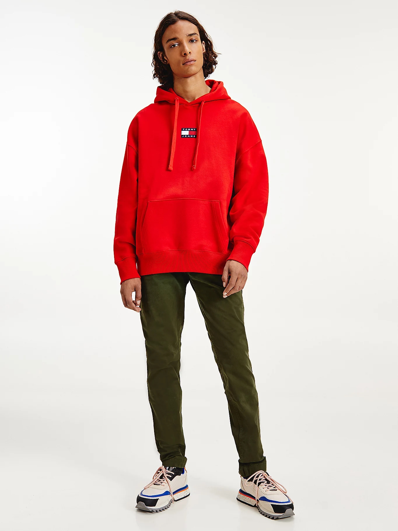 - Detalles distintivos de Tommy Jeans: parche con el logo de la marca en el pecho