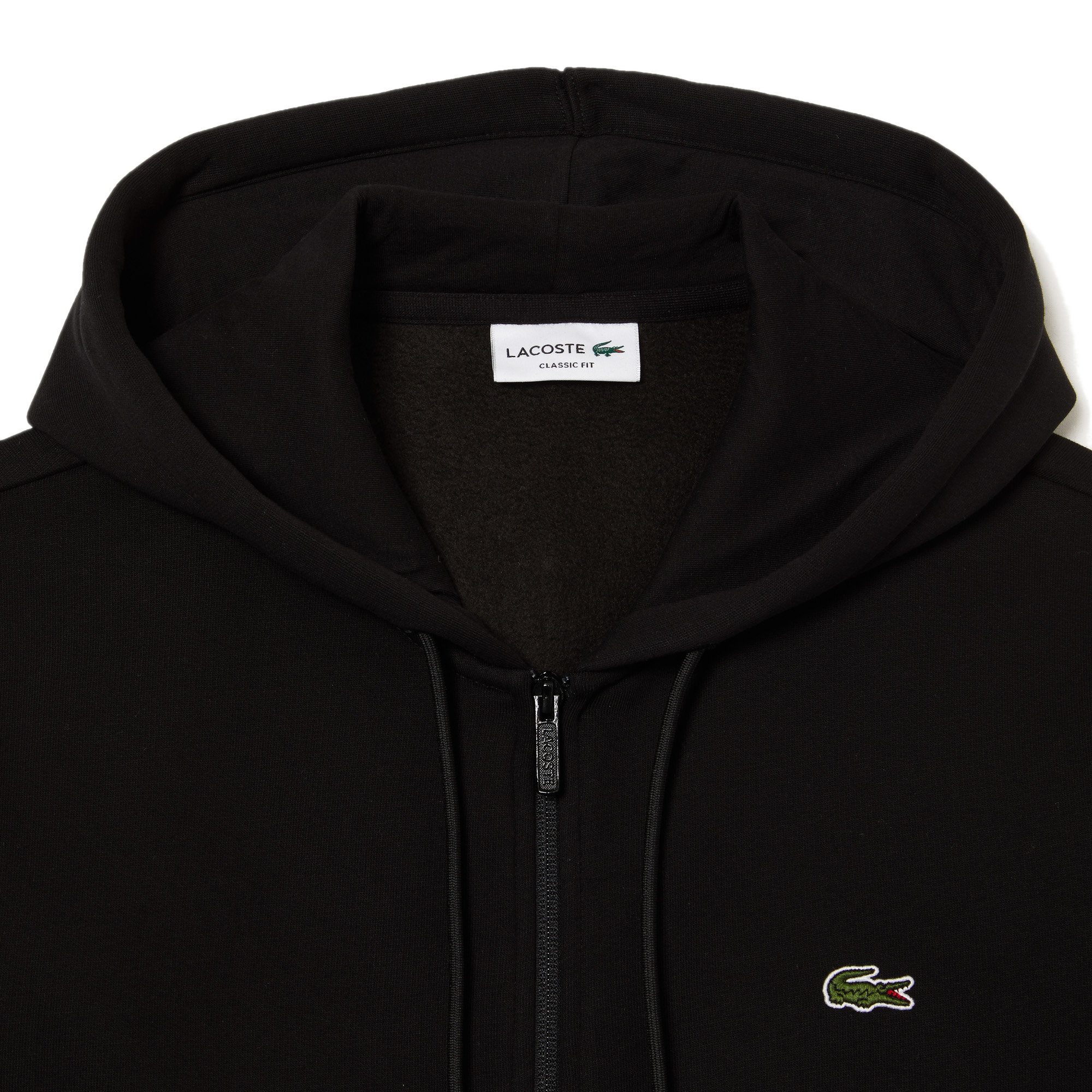 - Franjas con estampado de la marca Lacoste en las mangas