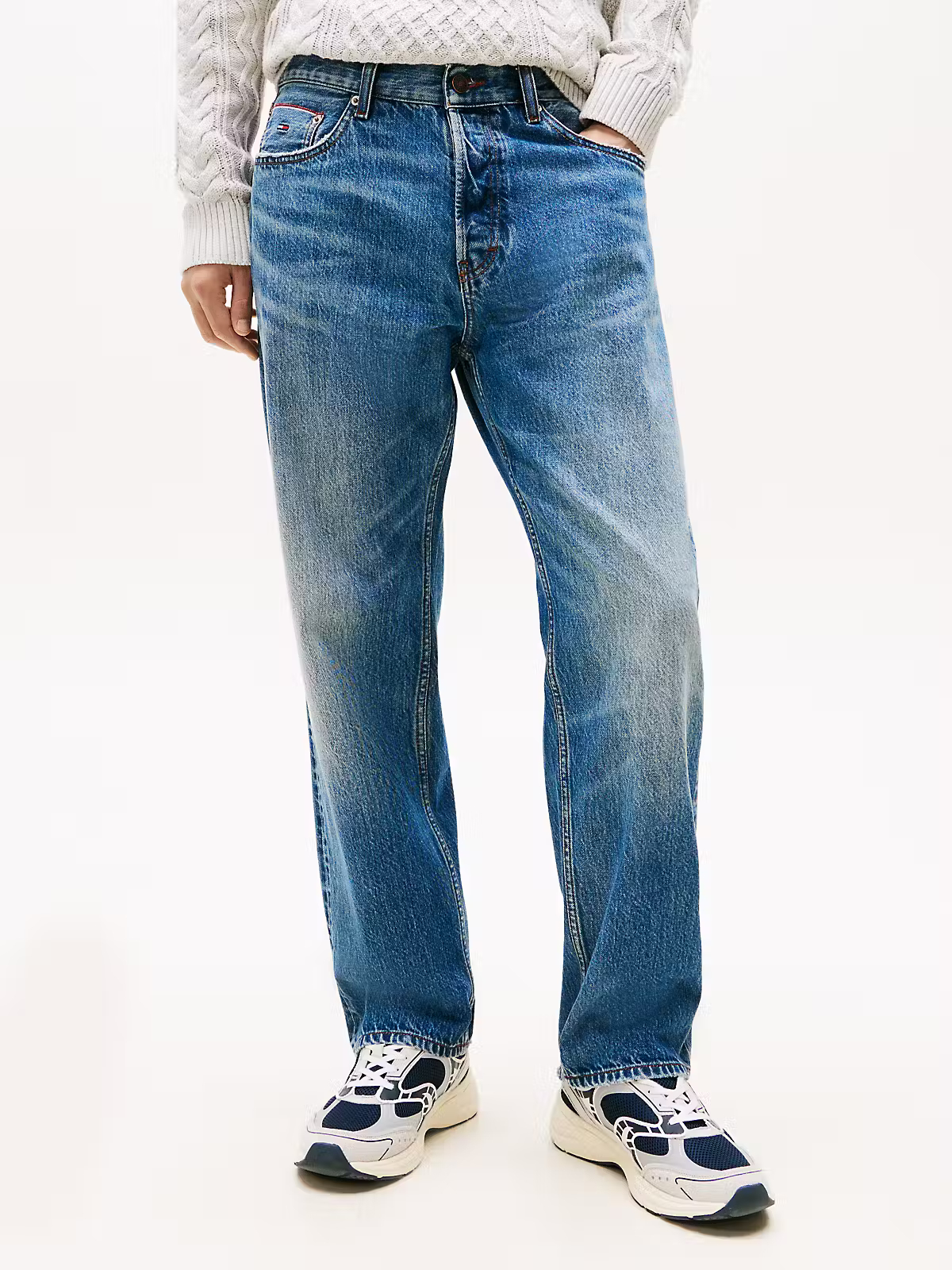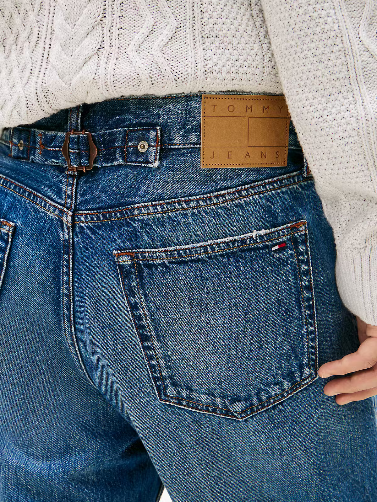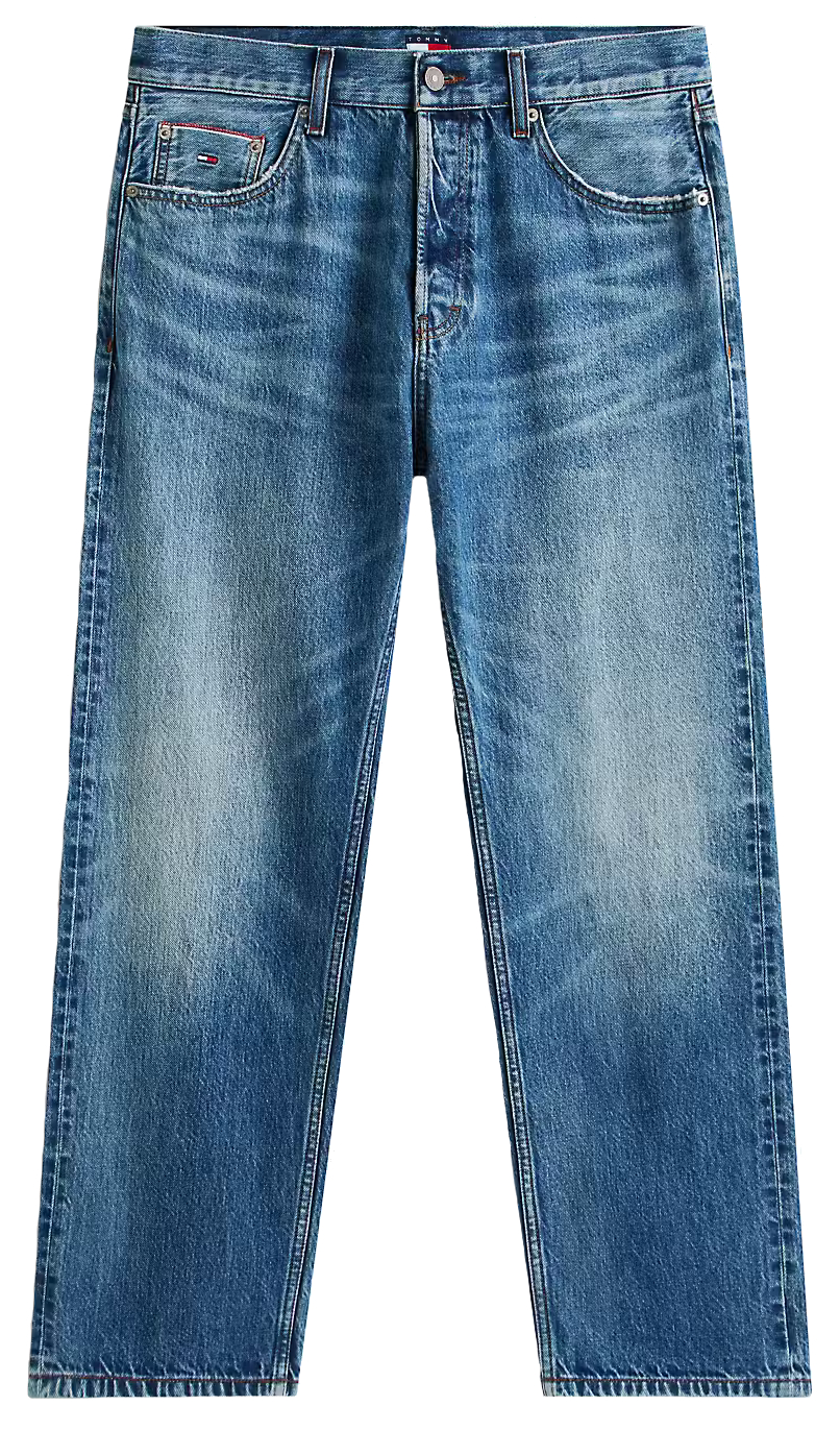 - Detalles distintivos de Tommy Jeans, incluyendo el icónico logo de Tommy bordado en los bolsillos traseros.