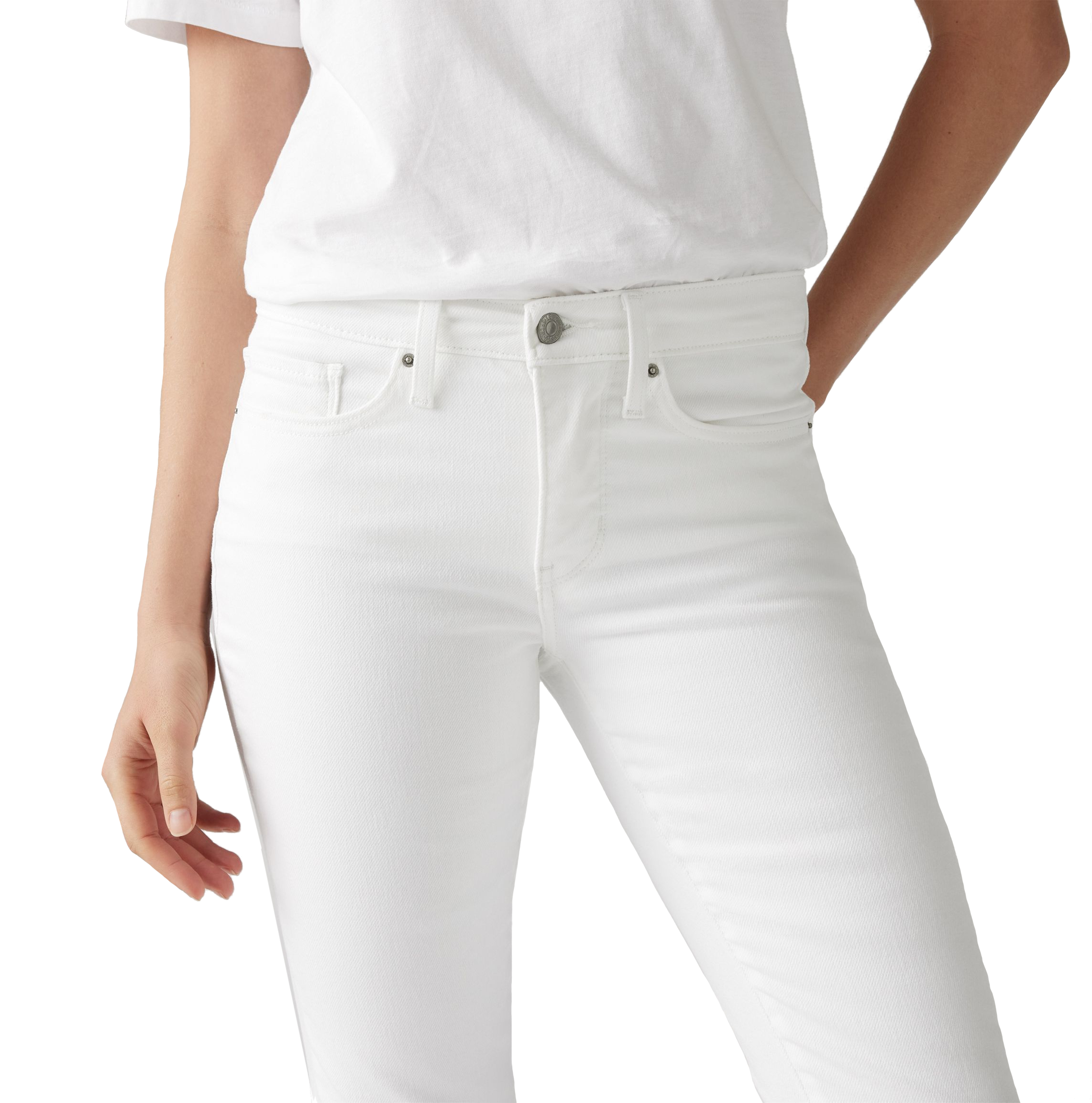 El vaquero recto Levi's 314 Moldeador, en un elegante color blanco, es sinónimo de sofisticación. Gracias a su panel que alisa el vientre y su talle medio de 23 cm, moldea eficientemente las caderas y los muslos, brindando un acabado sin igual. Con un entrepierna de 81 cm y una abertura de pierna de 36 cm basadas en una talla de cintura 27, aseguran un ajuste que es tan favorecedor como funcional.