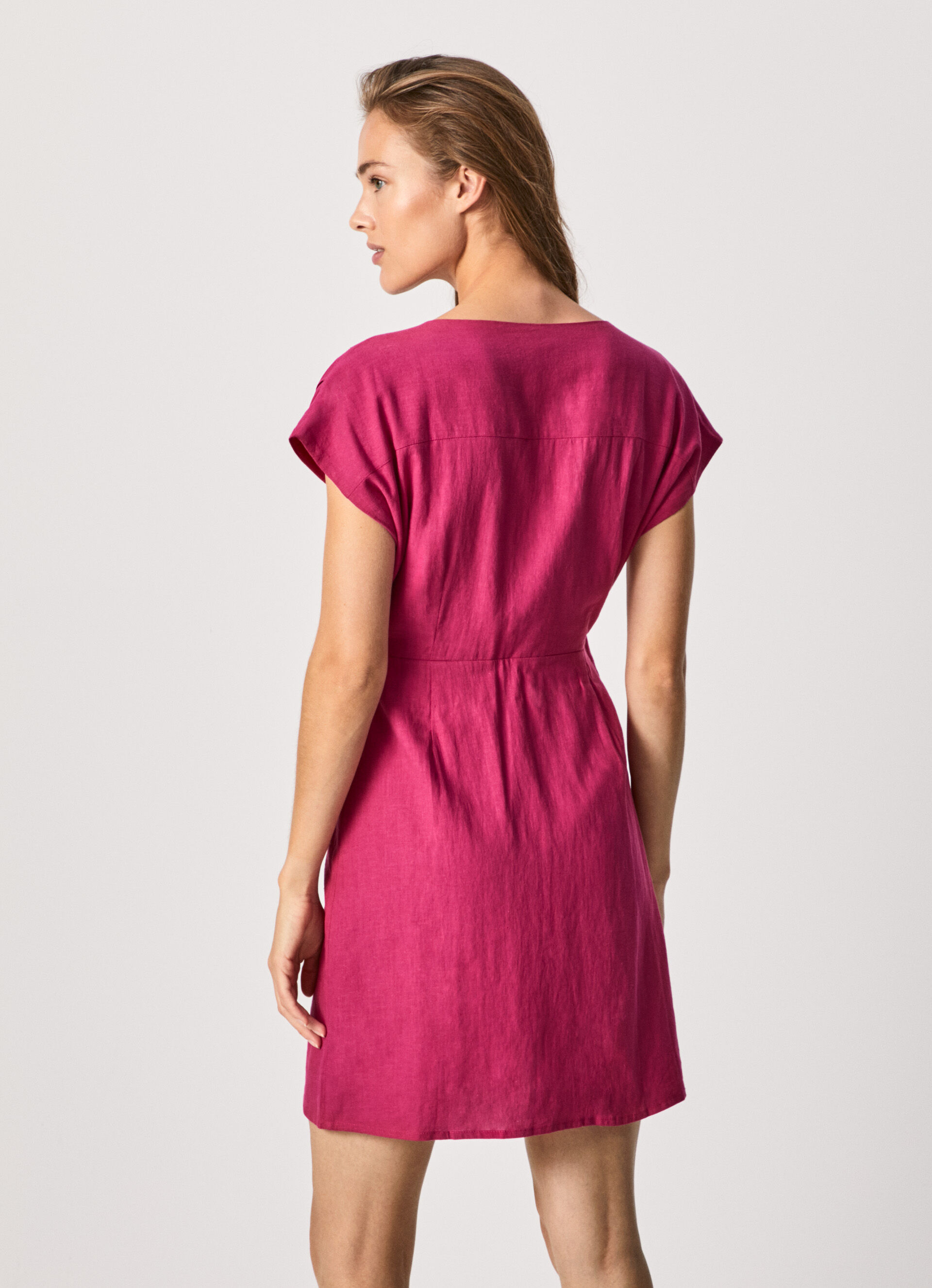 - Vestido corto manga sisa de lino